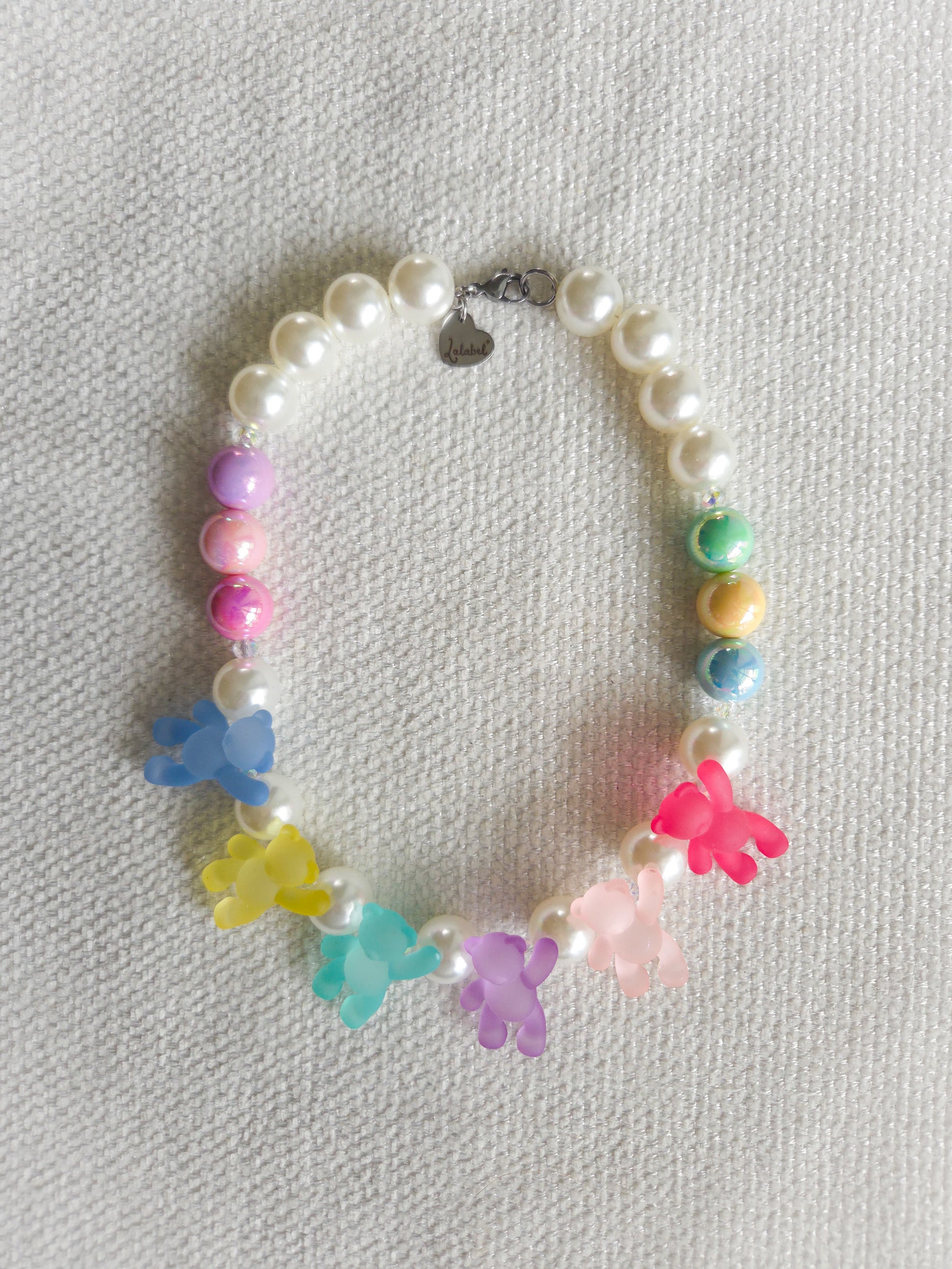 Sour Teddies is a statement necklace designed to celebrate color, play, and unapologetic self-expression. Oversized acrylic pearls pair with vibrant sour-toned teddy charms, creating a composition that feels fearless, nostalgic, and intentionally bold.