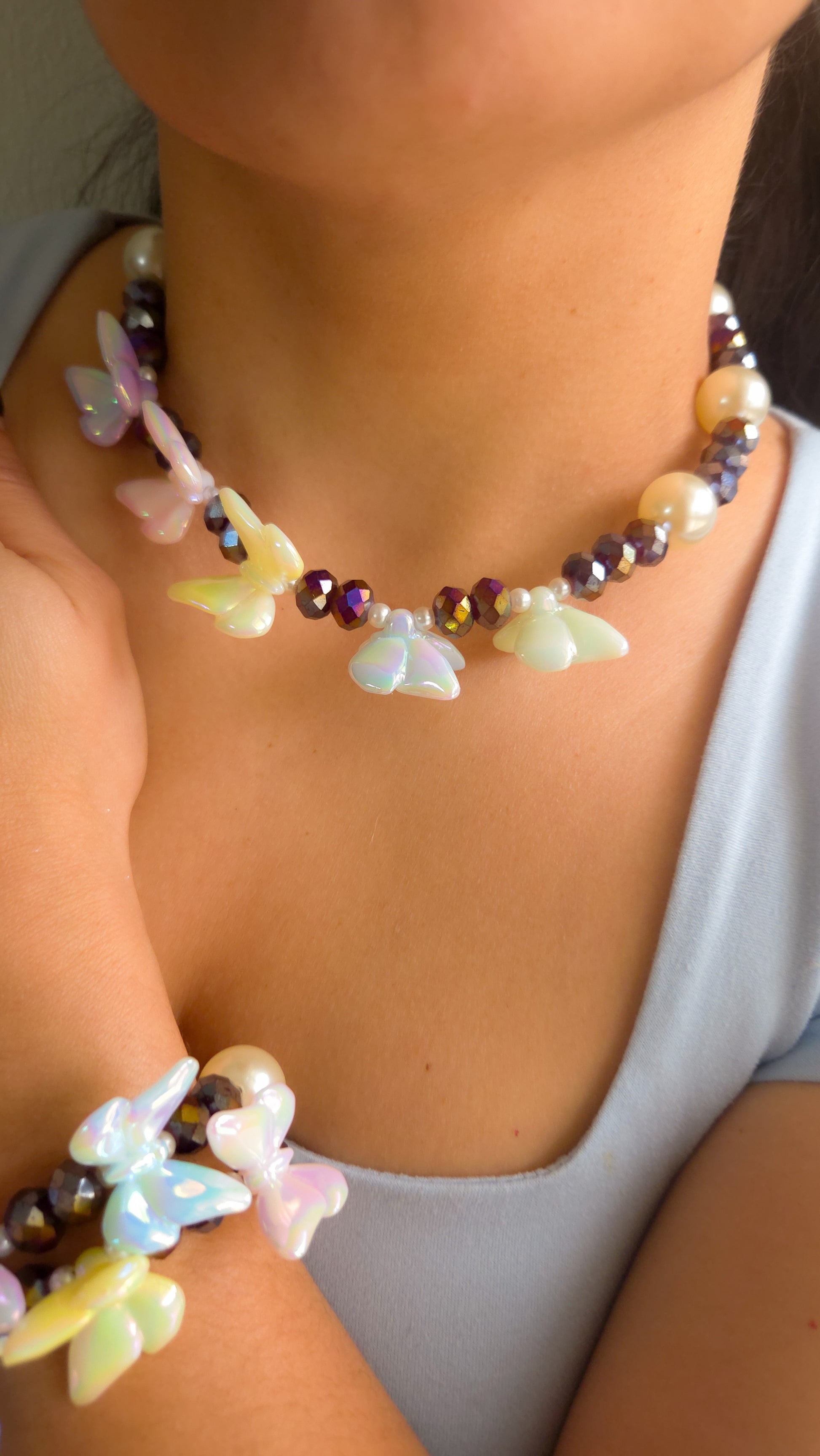 Handcrafted with faceted glass beads, acrylic pearls, and iridescent pastel butterflies, this necklace radiates whimsical charm while keeping that chic, elevated Lalabel touch. 💖