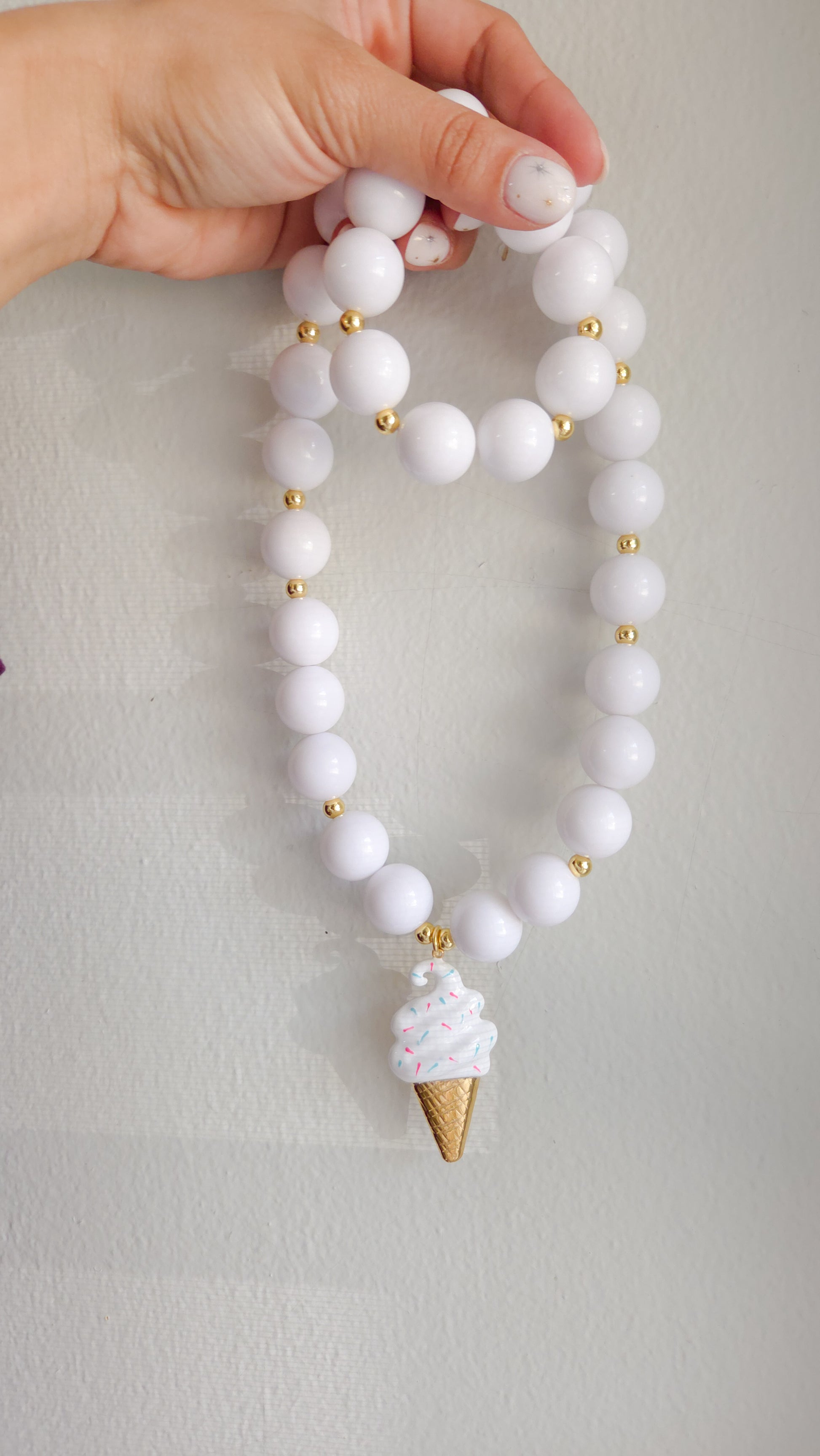 Chunky white acrylic beads give it a clean, statement look, while subtle gold-tone hematite accents add a touch of polish. Itās fun without trying too hard, cute without being childish, and made to give you an instant dopamine hit every time you look down at your wrist.