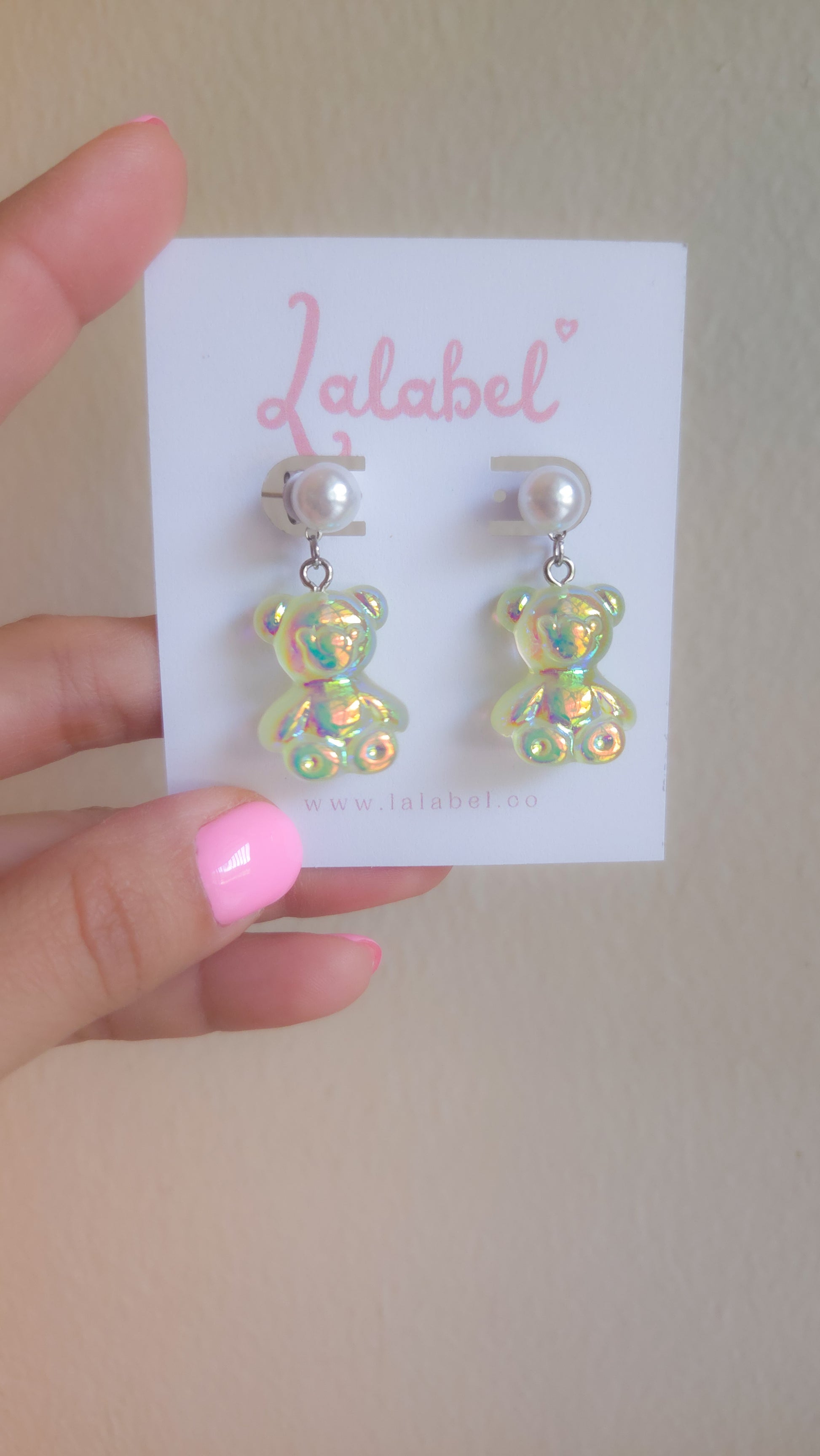 Featuring iridescent acrylic teddy bears that shimmer with every move and faux pearl studs for that perfect girly touch πŸ’•