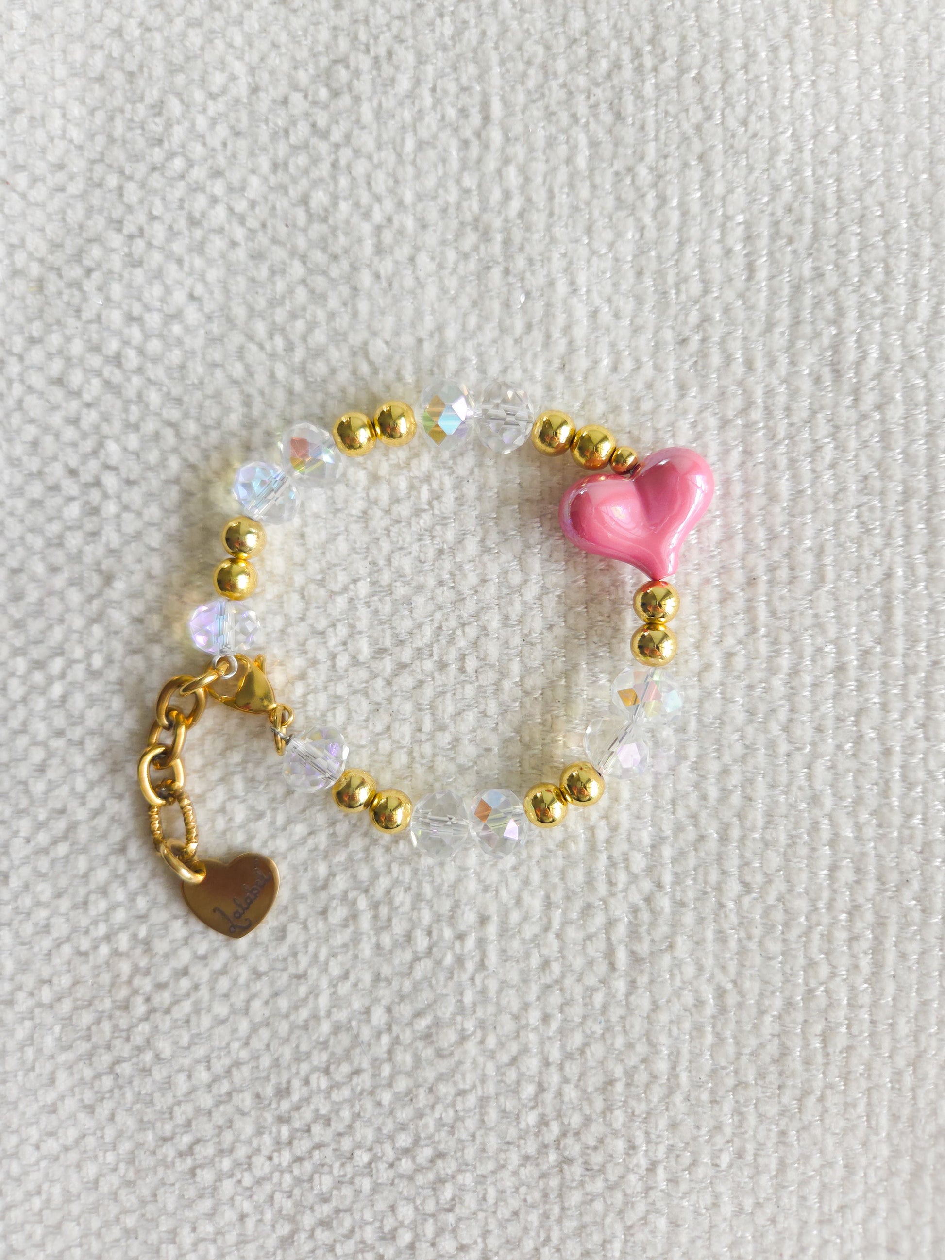 Candy Heart Dream is a joyful composition of glossy acrylic heart charms, soft candy-toned hues, and subtle sparkle. Designed to feel expressive and lighthearted without losing its polish, this piece brings color, shine, and a sense of nostalgia into a refined, wearable form.